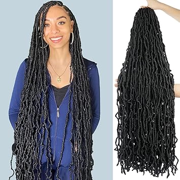 Amazon Com 40 Inch New Faux Locs Crochet Braids Curly Wavy Goddess Soft Locs 4pcs Pre Looped Goddess Locs For Women Synthetic Locs Braiding Hair Extensions 40 Inch 4 Packs 1b